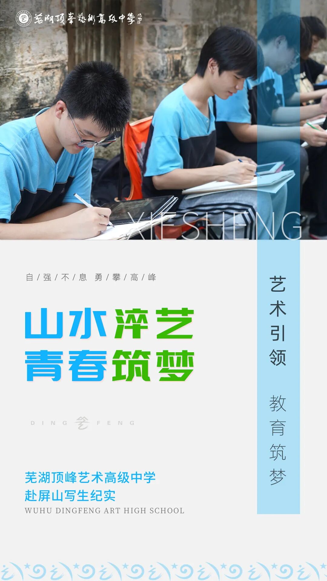 趁着秋风不寒,草木尚青,9月24日至30日,我校高二、高三师生共赴屏山,开启为期一周的写生实践。在直面风景的落笔里,让每一笔色彩、每一处线条都源于真实感知;将眼中所见、心中所感转化为艺术创作的扎实底气!   01 朝暮皆执笔 把自然搬进画纸   目光所至,皆为画卷。 层叠的远山如黛,古民居错落有致,马头墙勾勒出徽州独有的天际线。 画笔与山风的交响中,同学们开启与自然的对话。 沿街作画,自晨至昏,从选景到构图,从色调到塑造,每一次抬头望景、低头作画的往复里,风景在画纸上定格,而观察力、理解力与表现力,则在心手合一间悄然生长。   02 师者常相伴 谆谆教诲伴笔端       写生路上,老师们从未缺席。 他们或俯身于画架旁,手持画笔现场示范;或驻足于同学身侧,逐幅评点线条的虚实、色彩的冷暖、画面的层次,笔尖轻点处,细致标注每一处可精进的细节。让同学们曾经生涩的笔触,渐渐多了几分笃定;犹豫的色彩取舍,慢慢添了些许果敢。 /白天 现场指导/ /晚间 逐幅评点/   03 歌声中挥别 画上闪亮的句点   用一场热闹的晚会,暂别笔墨的专注。 在“第四届校园文化艺术节・屏山写生文艺汇演暨颁奖典礼”的热烈氛围中,歌声随山风回荡,掌声为荣耀响起。青春与艺术在此炽热碰撞,每一份努力都被郑重见证,凝结成我们共同亲历的成长高光。     04 细致处护航 创作无后顾之忧   这场写生之旅的顺畅,藏在每一个周密的细节里。 出行前,学校反复勘察路线、敲定食宿,开会制定周全预案;行程中,专业教师专注授课,班主任定时巡查、关切学子状态;每夜宿管老师查寝,守护安全与作息。这一切妥帖的保障,为创作铺就了安心的底色。         当画笺盈满景致,当相机存满笑颜 我们便满载着收获,踏上归程 屏山记得,这群为梦执笔的少年们 青春记得,这段与艺术同行的旅程 画笔常新,步履不停 愿同学们继续在艺术的道路上 去追寻光,也成为光