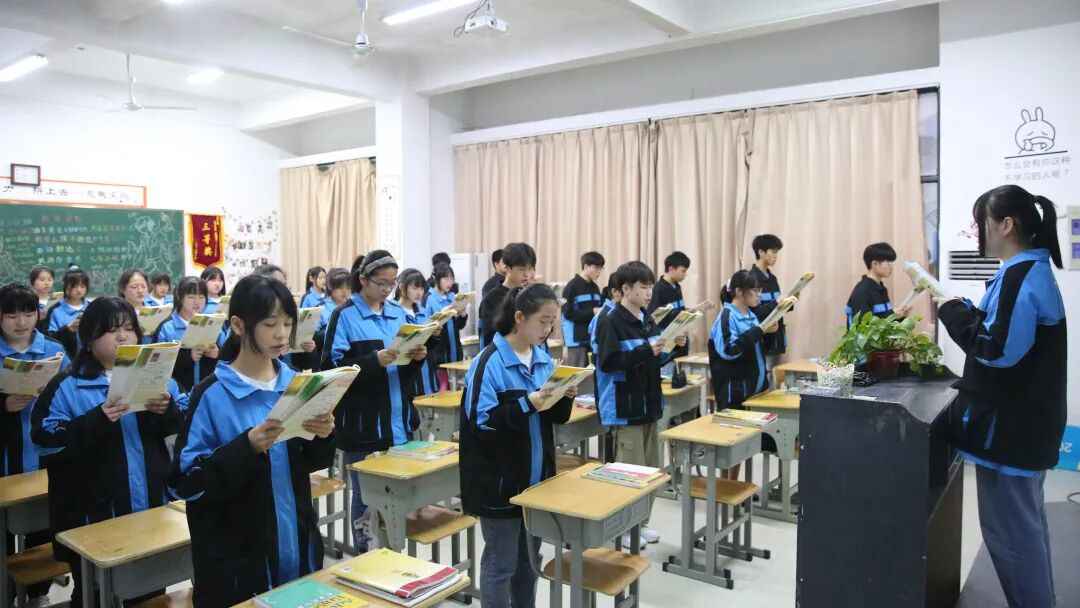 耳畔回响的是书声琅琅 我们斗志昂扬,迎接曙光 笔直站立,站出的是天地浩荡 奋力呐喊,喊出的是激情希望 我们与朝霞共明亮 在顶峰这片沃土上 未来于我们,山高水更长