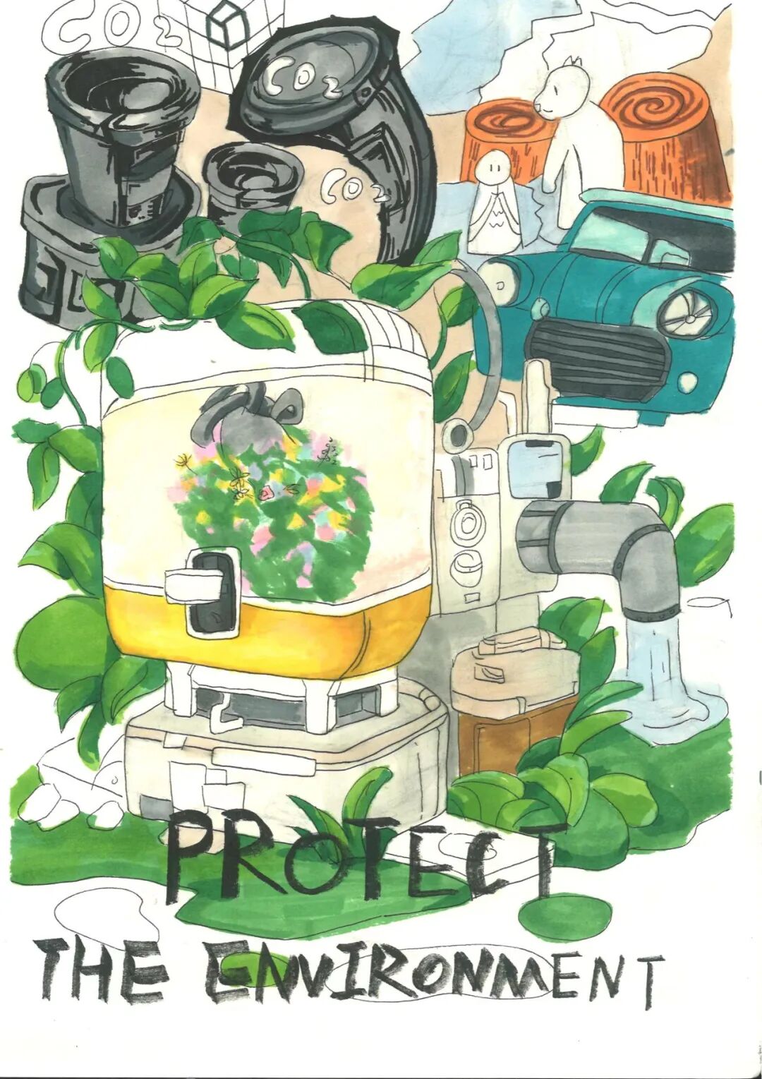 践行双碳精神,赋能绿色发展。我校学子的美术创作传播绿色环保发展理念,美丽画卷传递节能减碳意识。借此活动,希望同学们能积极做绿色低碳的宣传者、践行者、推动者,为环保助力,一起开启“绿色”未来!