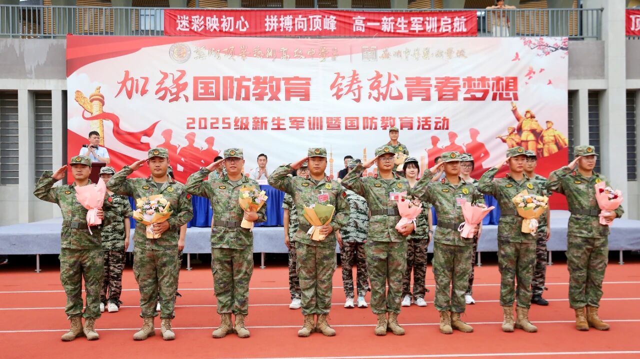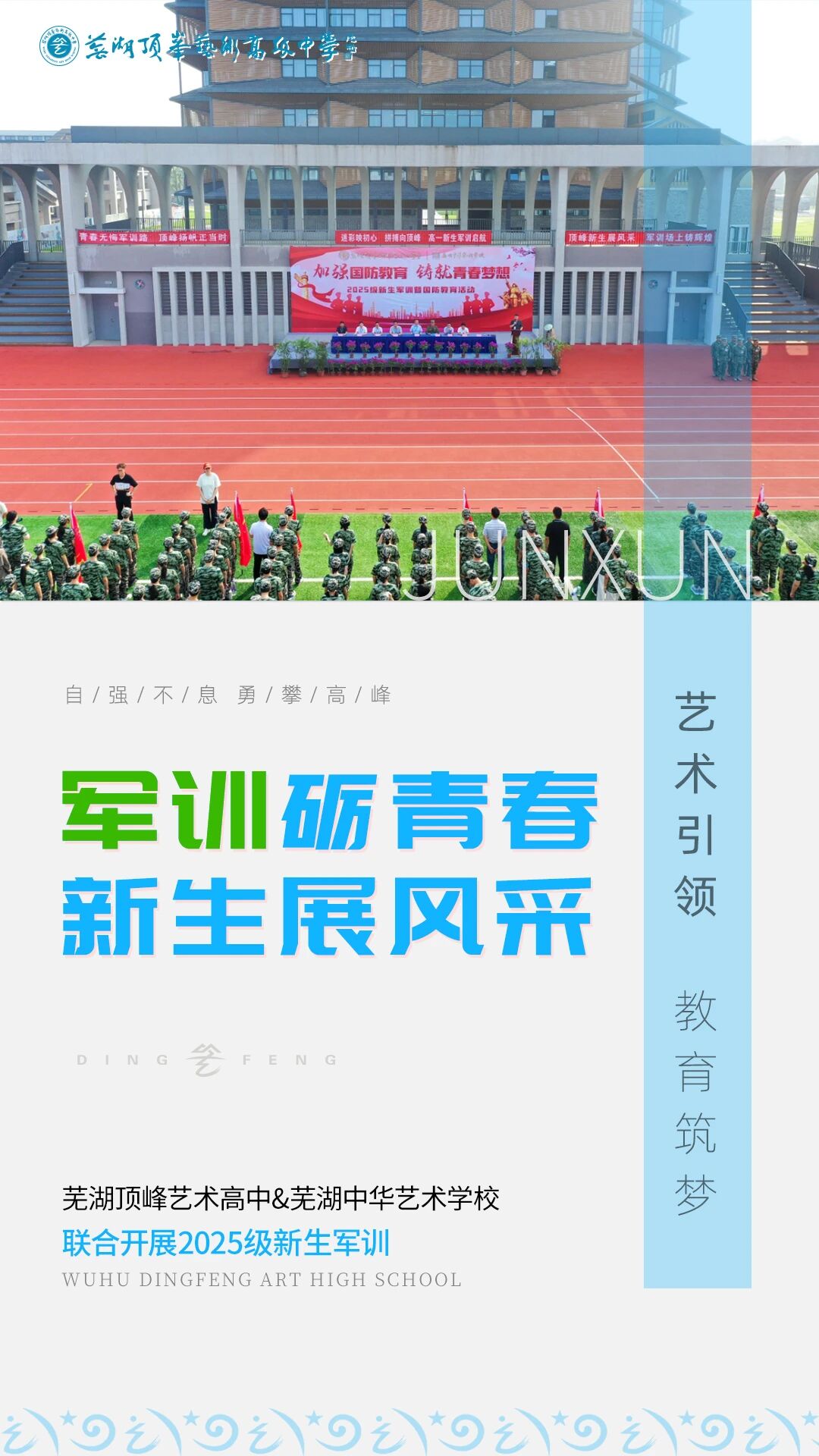 九月的骄阳依旧 青春的热烈正好 军训的集结号已然吹响 芜湖顶峰艺术高中&芜湖中华艺术学校 联合开展2025级新生军训 -- 那一抹跃动的迷彩绿 从不只是青春的装饰 它是国防教育的生动实践 是“少年强则中国强”的时代注脚 是骄阳下的锤炼,更是成长的序章 同学们在汗水里蜕变,在磨砺中升华 以无畏的身姿,写下青春最铿锵的荣耀 迷彩青春,自此启航。伴随庄严的国歌,军训正式开营。校领导、教官和学生代表相继发言,激励同学们严格要求自己,刻苦训练、锤炼意志、不负使命。全体同学誓言铿锵,响彻校园,标志着这段淬炼成长的迷彩时光全面开启。 站军姿,如松而立——以静制动,磨砺心性;战术训练,一招一式——果断利落,初显锋芒。骄阳下,身姿笔挺,静默之中积蓄力量,坚持之间淬炼意志;暮色里,身影如风,掷地有声的口号与脚步,汇成一首少年战歌。 军训期间,学校组织开展了一系列法治教育讲座,围绕多个领域为同学们带来了内容扎实、讲解生动的安全课堂。讲座不仅增强了学生的法治观念和自我保护意识,更在大家心中筑起了一道坚实的安全防线,体现出“寓教于训、法护成长”的育人理念。 9月14日迎来军训结营仪式。全体师生与教官齐聚操场,为这段迷彩岁月画上圆满句号。 分列式上,步伐铿锵,踏出青春强音。学子目光如炬、身姿挺拔,以整齐划一、铿锵有力的步伐接受检阅,每一步都踏出坚持与蜕变的力量。 寄语未来,言谆意重,点燃奋进薪火。侯校长勉励学子将军训锤炼的纪律与作风,化为攀登人生高峰的基石;教官鼓励同学们保持斗志,迎接未来一切挑战;学生代表承诺,必将把军训淬炼出的纪律、团结与坚韧,化为前行动力,不负青春、不负家国。 荣誉时刻,表彰先进,凝聚集体力量。大会对军训期间表现突出的先进集体与个人予以表彰。一张张证书映照着拼搏的身影,凝聚着团结的汗水。 鲜花致敬,情谊涌动,铭刻迷彩时光。学子手捧鲜花,奔向最可爱的人——所有拼搏、教诲与感动,都凝结于此刻的泪光与笑容之中。 七日军训,终成过往 一生信念,自此生根 同学们褪去了稚嫩,却多了份坚韧 记得曾有一段时光,他们身着迷彩 在阳光下宣誓 —— 把青春的热,化作守护家国的光 将军训淬炼的硬气,化为走向远方的底气 迈向更广阔未来的开始