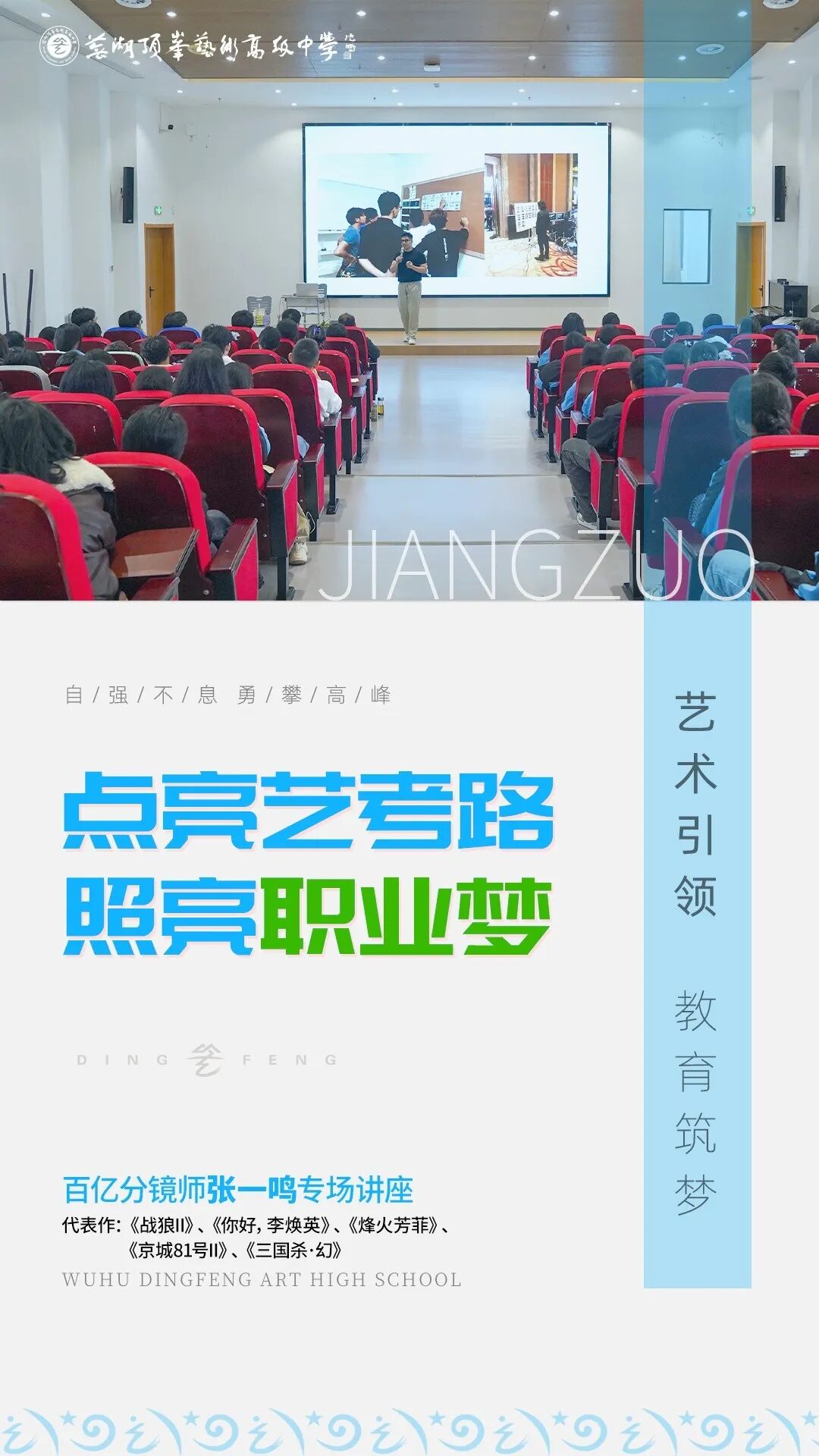 深入创作现场 看见艺术职业的无限可能 张一鸣老师从《战狼2》的战场张力,到《你好,李焕英》的情感分镜,层层拆解高票房作品背后的视觉逻辑与核心流程。 这不仅是一场视听盛宴,更是一次职业认知的刷新——让同学们在角色情绪、镜头语言与脚本构思中,领悟艺术不仅是技法与美感,更是逻辑、叙事与情感的综合表达,提前看见艺术与产业接轨的无限可能。 直面行业前辈 解答成长路上的关键疑问 互动环节中,同学们围绕艺考准备、专业选择、行业趋势等踊跃提问,张老师真诚分享,一一回应。现场气氛热烈,不少同学表示:这场讲座不仅解开了当下的困惑,更点燃了对艺术之路的坚定信念。 珍藏一份寄语 签名合影定格温暖瞬间 讲座尾声迎来温馨的签名合影环节。张一鸣老师为同学们签名、写下个性化寄语,更与大家亲切合影留念。 这份来自行业前辈的近距离互动,不仅定格了温暖的瞬间,更成为同学们艺考路上一份珍贵而具体的鼓励与纪念。 省考在即,艺术生涯亦将启程 愿每一位顶峰高三学子 都能带着这场讲座带来的启发与力量 在更广阔的艺术天地中 找到属于自己的那束光 学校也将持续搭建平台 助力你们从顶峰出发 走向更远的未来