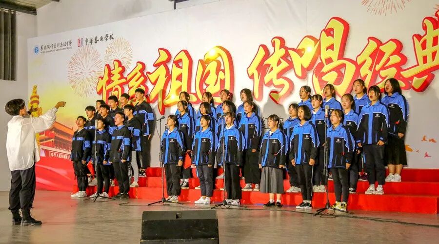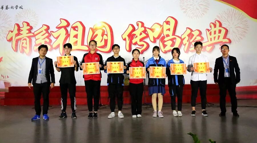 红歌 记录了革命的历史 抒发了革命的豪情 是一种精神力量的源泉 是一面引领前进的旗帜 是一曲激励奋进的号角   为歌颂新中国70年来的奋斗历程和辉煌成就,弘扬爱国主义精神,营造昂扬向上、特色鲜明的校园文化氛围,10月21日晚,芜湖顶峰艺术高级中学举办了“情系祖国,传唱经典”红歌合唱比赛,同学们用饱满的热情、高亢的歌喉抒发对祖国的热爱与感恩之情。   校园文化赋予师生独立的人格,校园活动给予师生灵动的精神升华。每一次顶峰校园文化活动都是顶峰师生展现精神风貌和艺术才华的舞台,我校一直高度重视校园文化建设,通过举办本次红歌合唱比赛,将红歌融入校园文化,不仅陶冶同学们的思想道德情操,同时进一步增强同学们的文化自觉和文化自信。让每一位顶峰学子都能在红歌的感召下,凝心聚力、振奋精神,把爱国热情转化为不断前行的动力。     走进红歌合唱比赛现场 共同感受浓浓的艺术氛围和拳拳的爱国之情 /赛前候场 /气氛热烈 /主持人开场 /党支部书记、副校长汪琳致辞 23个班级,激情飞扬唱红歌     顶峰学子,心怀赤诚颂祖国     师生大合唱,响彻顶峰校园   在参赛的23个班级一首首铿锵有力、催人振奋的演唱后,由60名老师组成的教师方队压轴登场,一首《歌唱祖国》,全场师生大合唱,将现场气氛推向高潮。 /教师方队 /全场大合唱   激动人心的颁奖典礼   教师方队在台上演唱的同时,台下也正在进行紧张的分数统计,最终评选出本次校园红歌合唱比赛的一等奖1名、二等奖3名、三等奖5名、优秀奖7名。     高二(8)班《强军战国》 /马力副校长颁奖     高一(11)班《歌唱祖国》 高一(14)班《少年中国说》 高二(3)班《少年中国》 高一(7)班《我的中国心》 高二(7)班《今天是你的生日,我的中国》   /高定国主任和陈涛主任颁奖     高二(6)班《红旗飘飘》 高一(13)班《没有共产党就没有新中国》 高二(4)班《我爱你中国》 高一(1)班《我的中国心》 高一(12)班《大中国》 高二(2)班《我的中国心》 高一(4)班《歌唱祖国》   /洪良超主任和李军科长颁奖 激昂的歌声,吟唱难忘的岁月 优美的旋律,演绎时代的乐章 一曲曲历久弥新的经典红歌催人奋进 美妙高亢的旋律在校园上空久久不散 让整个顶峰校园弥漫着浓厚的红色气息 | 我们作为新时代青年 更要不忘初心,牢记使命 以坚韧不拔的精神面对生活中的每一件事 做好中华民族文化的传承者与弘扬者 对梦想不断追求,为未来不断奋斗   end
